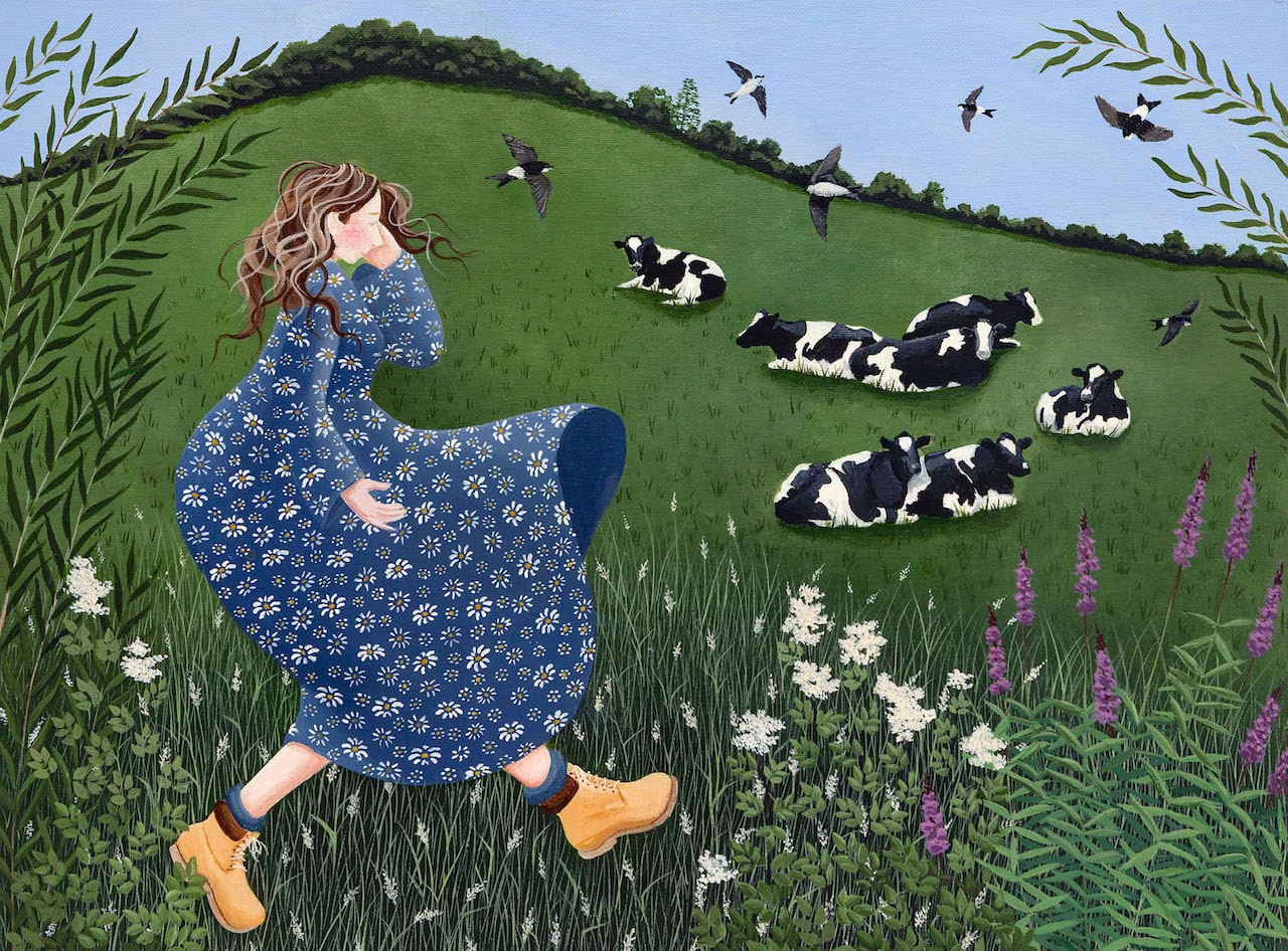 She paints mostly in acrylics and takes inspiration from everyday life - especially her three daughters.